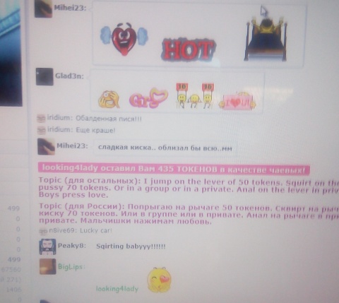 Pritiskom na tipku podići ćete BigLips na prvo mjesto na glavnoj stranici na 60 sekundi. Tijekom tog vremena, chat soba ovog modela postat će mnogo vidljivija i popularnija! Obavijest o Vašem postupku pojavit će se na chatu, a moći će ju vidjeti model i drugi korisnici. BigLips će sigurno cijeniti Vašu gestu i biti Vam neizmjerno zahvalna!