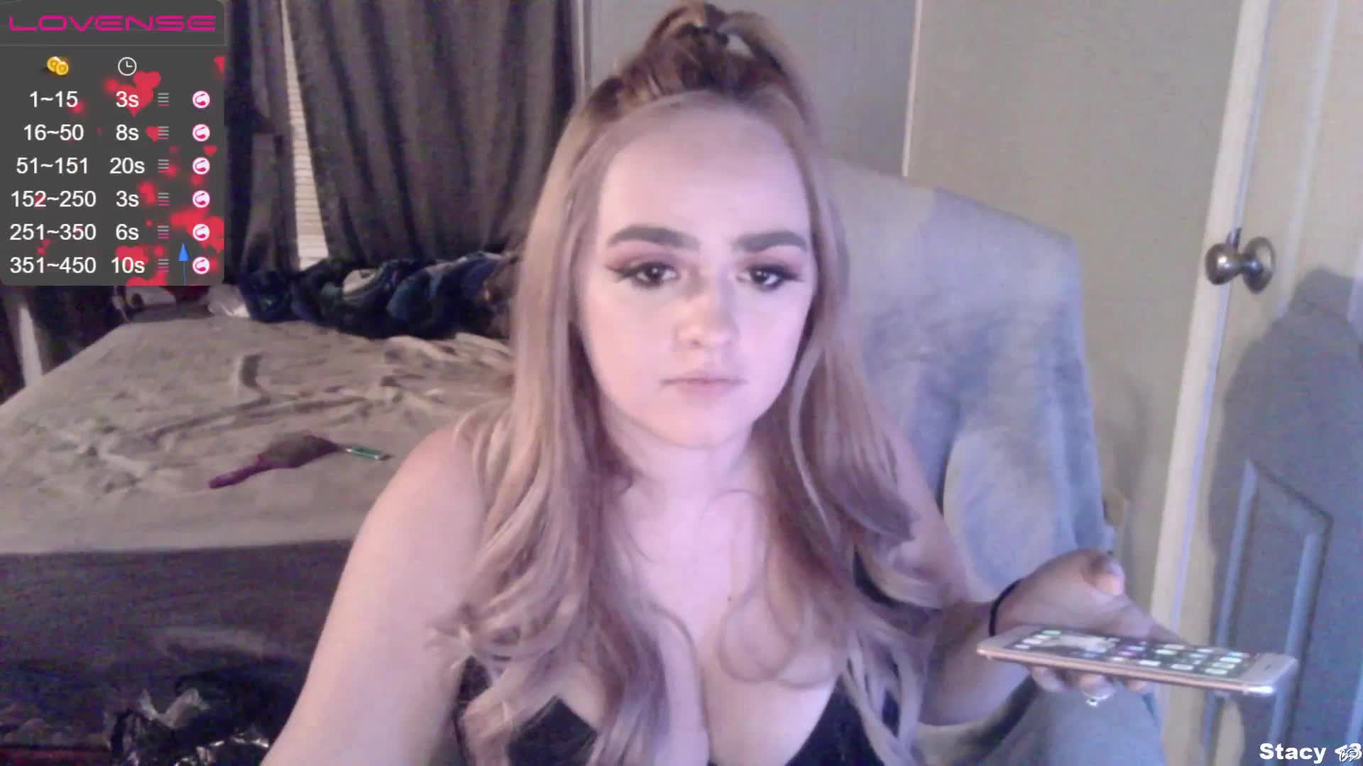 Pritiskom na tipku podići ćete MissStacy na prvo mjesto na glavnoj stranici na 60 sekundi. Tijekom tog vremena, chat soba ovog modela postat će mnogo vidljivija i popularnija! Obavijest o Vašem postupku pojavit će se na chatu, a moći će ju vidjeti model i drugi korisnici. MissStacy će sigurno cijeniti Vašu gestu i biti Vam neizmjerno zahvalna!