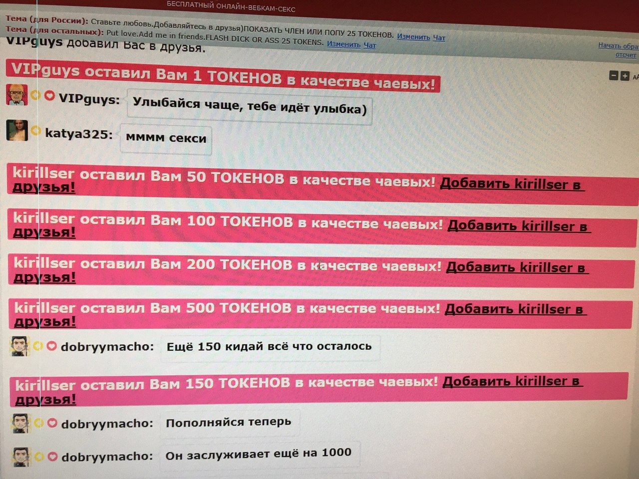 Pritiskom na tipku podići ćete fitnesssmodel na prvo mjesto na glavnoj stranici na 60 sekundi. Tijekom tog vremena, chat soba ovog modela postat će mnogo vidljivija i popularnija! Obavijest o Vašem postupku pojavit će se na chatu, a moći će ju vidjeti model i drugi korisnici. fitnesssmodel će sigurno cijeniti Vašu gestu i biti Vam neizmjerno zahvalna!